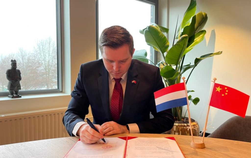 The Director of the Dutch Chinese Chamber of Commerce signs the cooperation agreement.